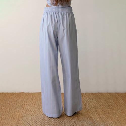 HOT ! Women Striped Wide Leg Y2k Pants Drawstring Elastic Waist Trousers Casual Loose Lounge Pants with Pockets
