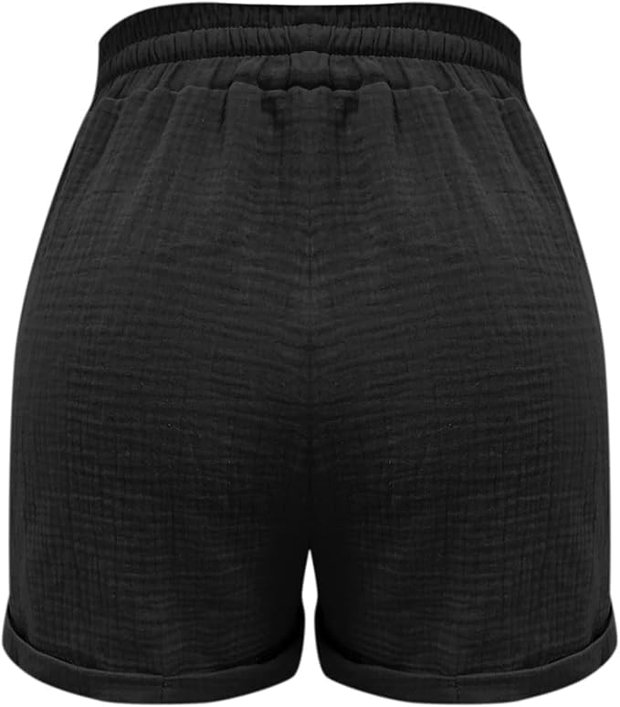 Women's High Waist Lace Up Loose Wide-Leg Shorts Beach Flowy Short Pants Drawstring Palazzo Capri with Pockets 3