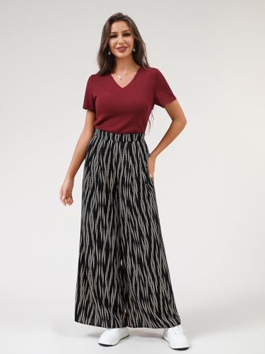 HOT ! DERAX Women's Wide Leg Palazzo Pants Summer High Waist Flowy Beach Boho Floral Lounge Pants Lightweight Trousers Pockets