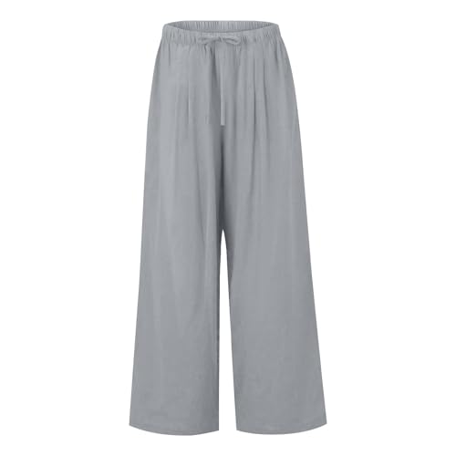 HOT ! Flowy Wide Leg Linen Pants Women Summer Baggy Beach Vacation Palazzo Pants Casual High Waisted Pants with Pockets
