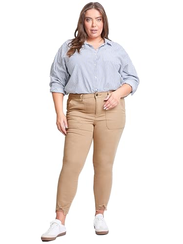 HOT ! Royalty For Me Women's Plus Size Mid Rise Frayed Ankle Pants, Sahara, 16W Khaki