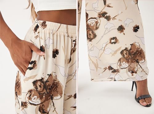 • Floral Printed Boho Tropical Pattern Palazzo Wide Leg Pant with Pockets for Women