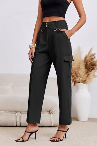 Cicy Bell Womens High Waisted Cargo Pants Casual Button Down Straight Leg Trousers with Pockets 1