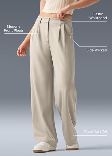 • Design:High-waisted fit and elastic back waist, it features front pleats that add a touch of modern flair. These women's dress pants shape your figure while offering all-day comfort and a professional look. The roomy, wide-leg cut flatters every body type, beautifully sculpting your curves.