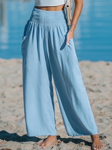 • [Unique Design]:Meet our Waist Smocked Loose Straight Leg Pants.With breathable fabric,relaxed fit and utility pockets design, these pants are comfortable and perfect for casual outings or lounging at home.