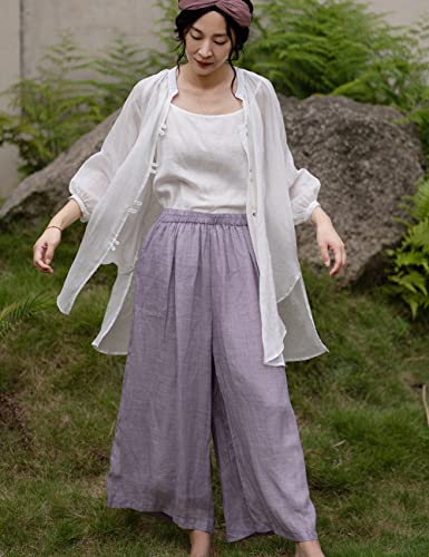 NFYM Women's Wide Leg Pants Layer Cropped Loose Elastic Waist Spring and Summer Cotton Linen Trousers 4