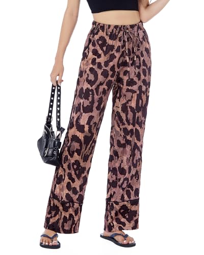 More information about Ladyful Women's Leopard Print Satin Palazzo Pants Wide Leg Elastic Waisted Cheetah Palazzo Going Out Pant Trouser