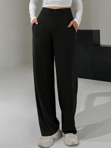 Women Casual Lightweight Pants Long Wide-Leg Pants with Cross High Waist 5