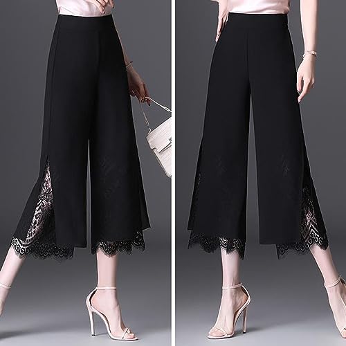 HOT ! Lace Stitching Trousers Comfortable Ladies Pants Wide Leg Elastic Waist Lace Stitching More Elastic Waist Pants