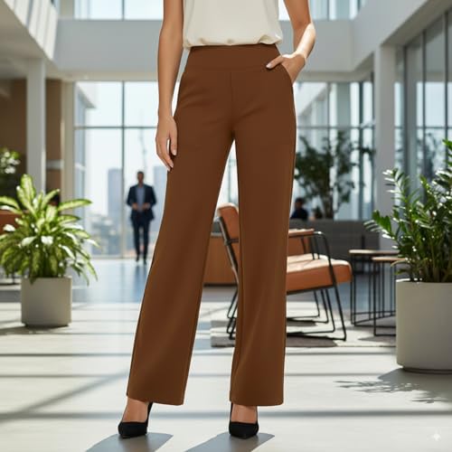 Lumilift Work/Yoga Pants, BodiEVA High-Waist Straight-Leg Work Pants Set, High Stretch Wide Leg Pant for Women 7