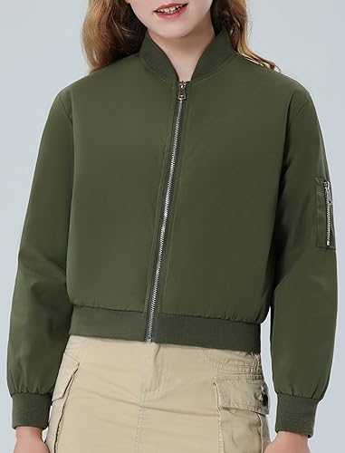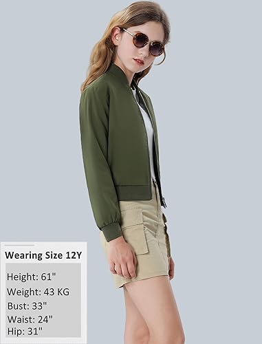 Mebius Girl's Cropped Bomber Jacket with Pockets Kids Classic Zip Up Flight Jackets Youth Casual Pilot Coat 6-12Y 6