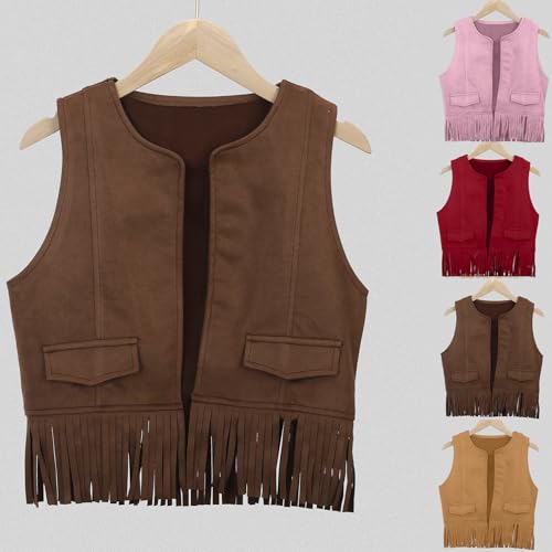 Toddler Girls Cowgirl Vest Western Fringe Sleeveless Jacket Faux Suede Boho Tassel Cardigan 70s Hippie Outwear 5