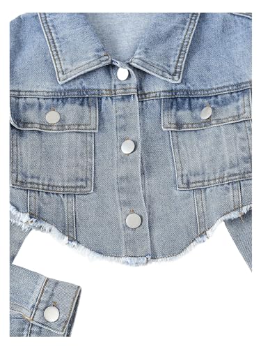 More information about Girl's Long Sleeve Asymmetrical Raw Hem Coat Collared Neck Button Up Crop Denim Jackets with Pockets