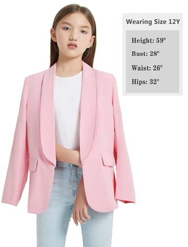 EXARUS Girls Blazer Blazers Suit Jacket Long Sleeve Shawl Collar Formal Open Front Inner Pocket for Kids 5
