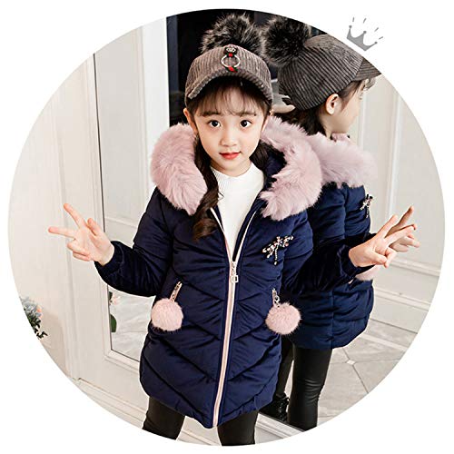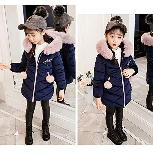 Evelin LEE Kids Girls Faux Fur Collar Hooded Velvet Puffer Jacket Winter Warm Zip Up Outwear Coat 6