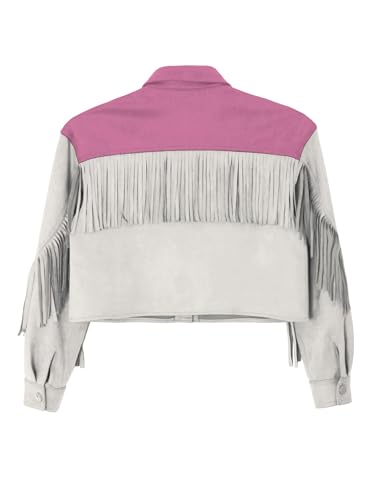 Aislor Kids Girls Rhinestone Star Denim Jacket Coat Faux Suede Tassel Long Sleeve Lapel Collar Button Down Coat Outwear 4