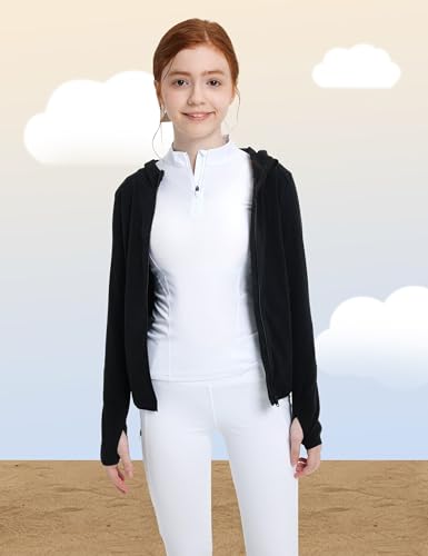 FitsT4 Sports Girls Fleece Horse Riding Shirts Full Zip Up Long Sleeve Kids Equestrian Jackets W Thumbholes Warm Sweatshirts 7