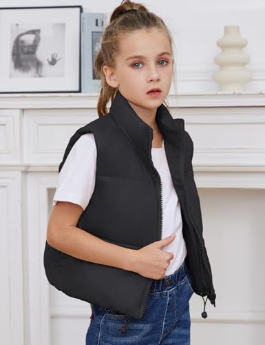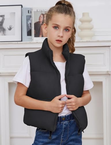 Arssm Girls Puffer Vest Short Lightweight Padded Gilet Full Zip Stand Collar Big Girls Sleeveless Jacket 6
