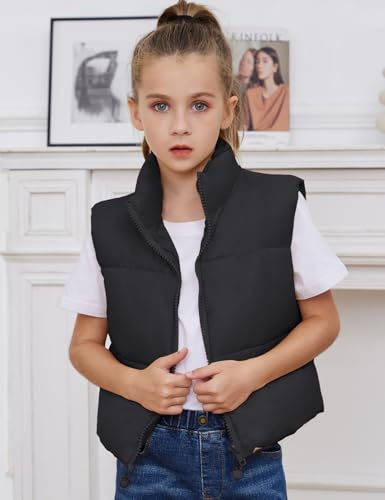 Arssm Girls Puffer Vest Short Lightweight Padded Gilet Full Zip Stand Collar Big Girls Sleeveless Jacket 5