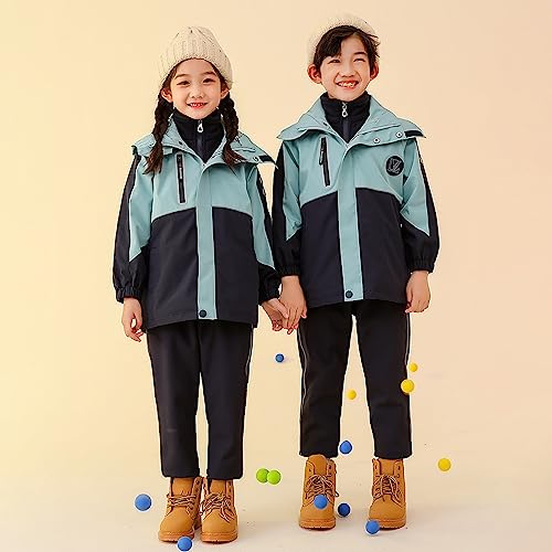Boys Girls Jacket 3 in 1 Detachable Lined Fleece Windproof Waterproof Lightweight Coat With Hood for Fall Winter 6