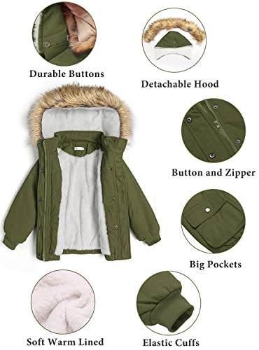 • Warm & Durable Snow Jacket: Girls Parka is Zipper and Button Closure, Removable Faux Fur Trimmed, Removable Hood, Windproof Elastic Cuff and Hem, Stand Collar and Soft Fleece Lined to keep warmth. Practical Two Front Flap Pockets with Button, convenient for your kid to carry somethings.