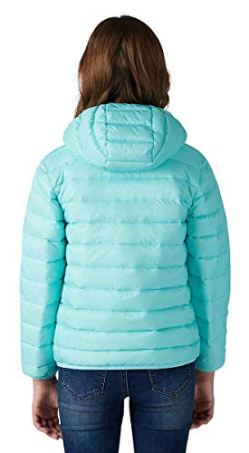 Eddie Bauer Girls Reversible Hooded Down Jacket (Aqua/Navy Print, Small 7/8) 5
