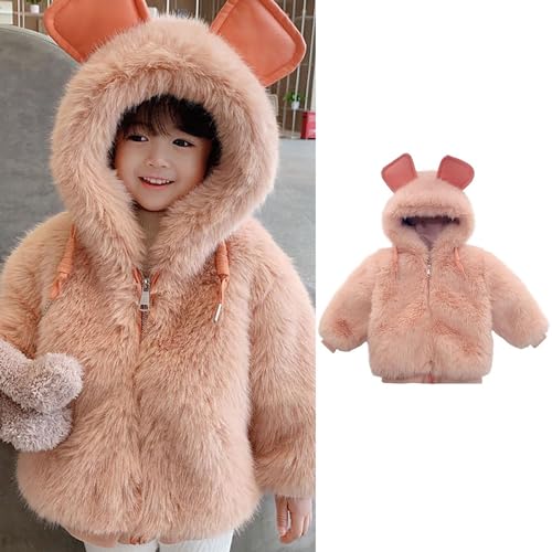 Infant Girls Faux F𝐮r Coats Cute Ear Zip Trendy Shaggy Jackets Toddler Fleece Lined Casual Warm Thick Outerwears 5