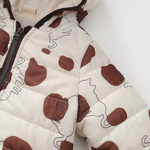 Kids Puffer Jacket Fleece Lined Bear Ears Cartoon Graphic Toddler Winter Coat Baby Girls Zip Up Lightweight Outwear 6