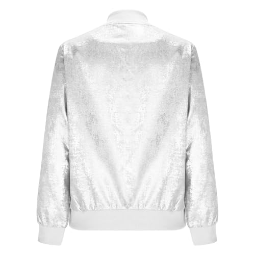Women's Metallic Zipper Bomber Jacket Outwear Long Sleeve Lightweight Jacket Coats Fall Trendy Going Out Outerwear 7