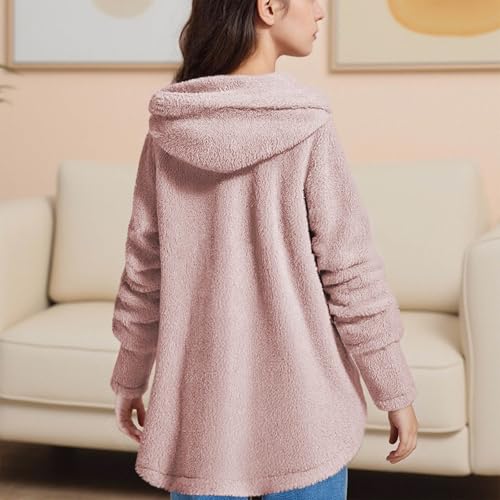 HOT ! Girls Fuzzy Fleece Coats Winter Thermal Sherpa Button Down Hooded Jackets Plush Warm Soft Cozy Long Sleeve Hoodies