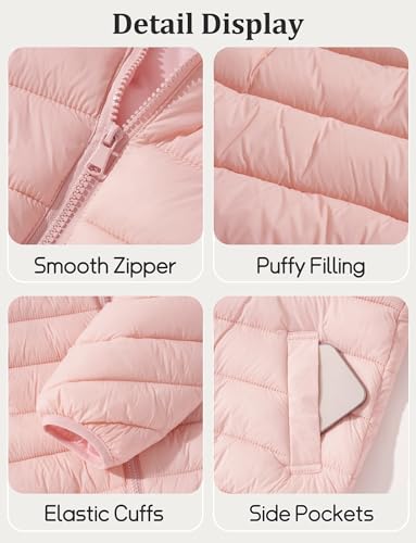 Happy Cherry Kids Boy Girls Packable Lightweight Jacket Stand Collar Quilted Puffer Coat Zip Up Hooded Outerwear 1-12Y 4