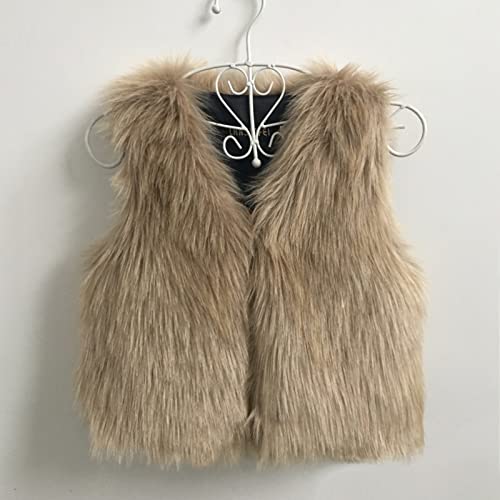 Faux 𝗙𝘂r Vest Jacket for Toddler Girls Open Front Sleeveless Thick 𝐅𝐥uffy Coat Windproof Shaggy Outerwear 4