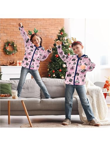 Pink Bow Skull Pumpkin Girls Fleece Jacket Girls Fall Jacket Boys Coats Zip Up Hoodie Children Outerwear 2-10T 3