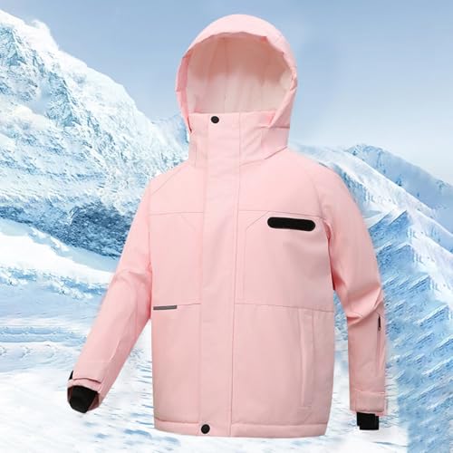 Kids Boy 𝗦now Jacket Solid Color Fleece Waterproof Winter Jacket with Hood Girls Windproof Hood Ski Coat 4
