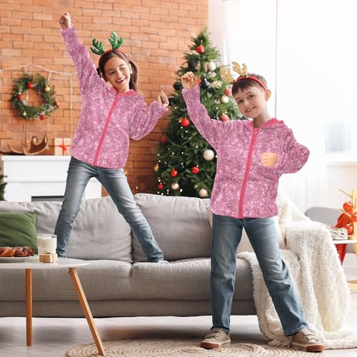 Pink Glitter Toddler Fleece Jacket Baby Girls Hooded Zipper Long Sleeve Thick Warm Outerwear 3-10 Years 3
