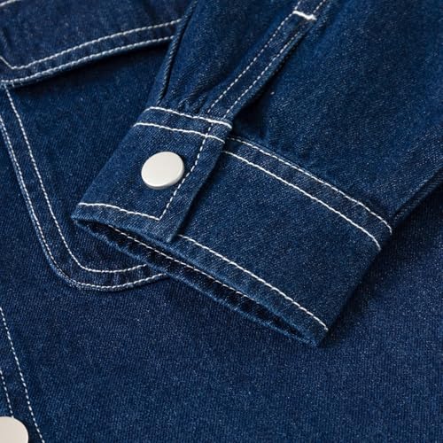 More information about Boys Girls Denim Shirt Lapel Oversize Long Sleeve Button Cowboy Outwear Teen Casual Solid Jacket with Pocket
