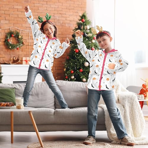 Halloween Bat Pumpkin Toddler Fleece Jacket Baby Girls Hooded Zipper Long Sleeve Thick Warm Outerwear 3-10 Years 3
