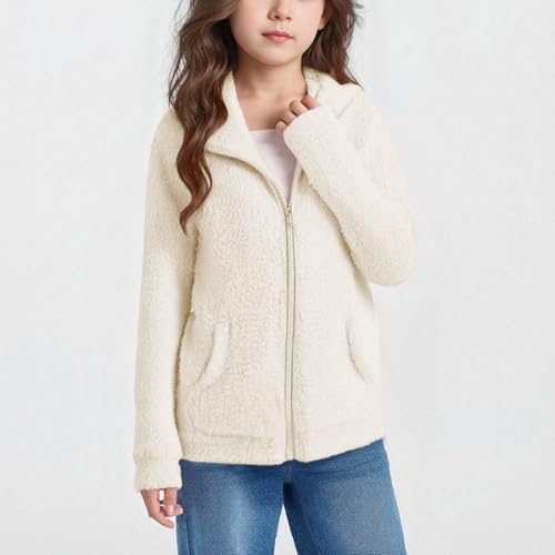 Girls Fuzzy Sherpa Coat Full Zip Hoodie Fleece Jacket with Pockets Oversized Fall Winter Outwear Furry Soft Sweatshirt 6