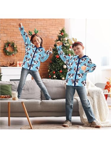 Sunglasses Dog Head Blue Girls Fleece Jacket Girls Fall Jacket Boys Coats Zip Up Hoodie Children Sherpa Warm Outerwear 2-10T 2