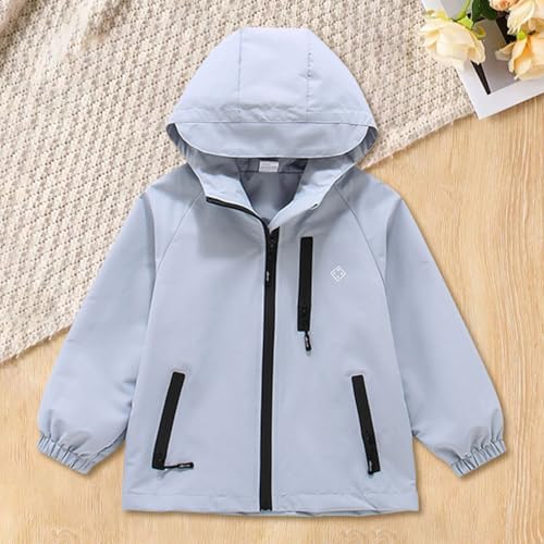 Kids Boys Waterproof Hooded Windbreaker Solid Windproof Athletic Jackets Girls Fall Thickened Thermal Outerwear Pockets 6