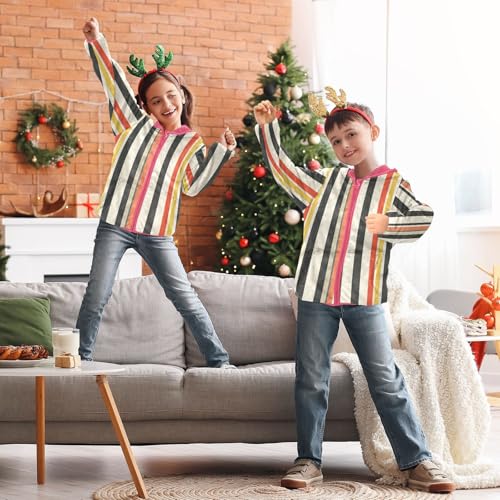 Vintage Stripes Boho Girls Fleece Jacket Girls Fall Jacket Girl Coats Zip Up Hoodie Children Sherpa Warm Outerwear 2-10T 6