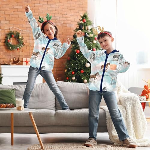 Horses Running on Clouds Toddler Fleece Jacket Girl Boys Hooded Fleece Jacket Coat Warm Outwear Zip-up 3-10T 4