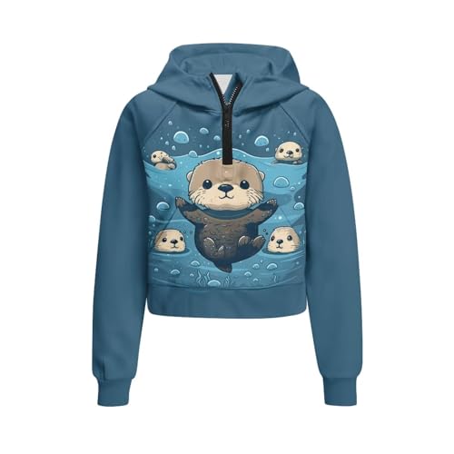 Half Zip Up Hoodies for Girls 5-14 Years Cropped Sweatshirt with Pocket Raglan Sleeve Fall Winter Clothes 5