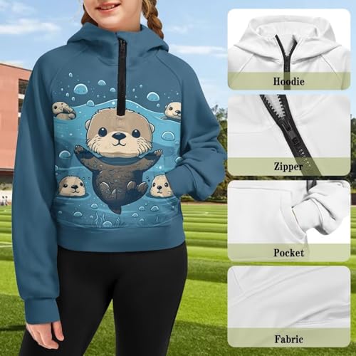 • Cute Girls Zipper Hoodie: Half zip up neckline with adjustable collar height, cozy plunge sleeves with kangaroo pockets for protection from the elements, loose fit, short pullover top with elasticized ribbed cuffs and elasticized hem, easy to put on and take off, windproof and warm, creating a casual and stylish look
