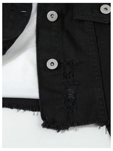 GORGLITTER Girl's Ripped Jean Jacket Button Down Long Sleeve Crop Denim Jackets Spring Fall Outerwear 5
