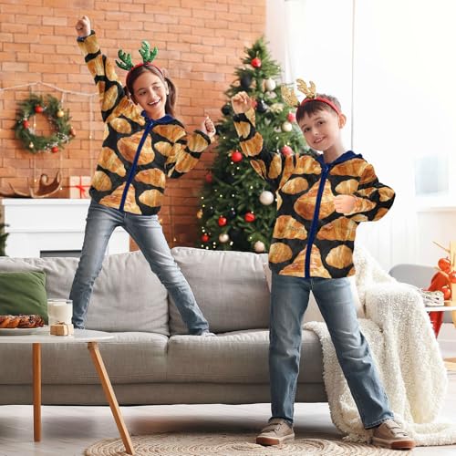 HOT ! Croissant Pattern on Black Background Toddler Fleece Jacket Girl Boys Hooded Fleece Jacket Coat Warm