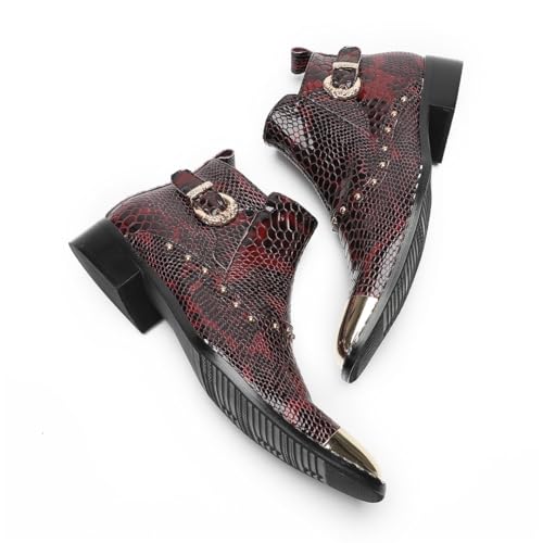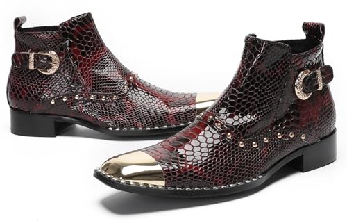 Santimon Men’s Dress Casual Ankle Chelsea Boots - Genuine Leather Snakeskin Texture Western Cowboy Boots with Metal Square Toe & Beads for Wedding, Party & Night Out 7