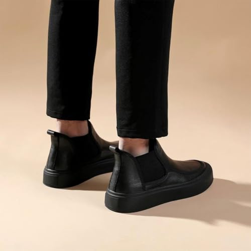 • Design: Men's black platform stretch Chelsea boots, anti-collision round toe design, slip-on, mid-top, simple and atmospheric. There are two linings to choose from, breathable and warm, suitable for wearing in all seasons.
