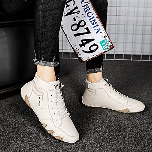 Men's High-top Casual Leather Ankle Boots,Lightweight Comfort Waterproof Non-slip Soft Sole Flat Barefoot Booties 7