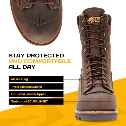HOT ! Carolina Birch Composite Toe Waterproof Logger Boots For Men - EH-Rated, Removable Kiltie, AG7 Footbed, Vibram Heeled Rubber Outsole